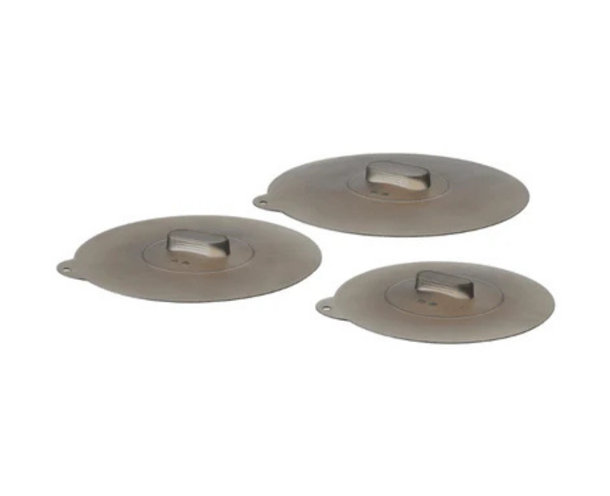 This set of three silicone lids is versatile and fits all sizes of pots and pans from the IKEA range. They create a vacuum seal to keep food fresh, maintain temperature, and protect from splatters while being durable, reusable, and suitable for the fridge, freezer, oven, and microwave.