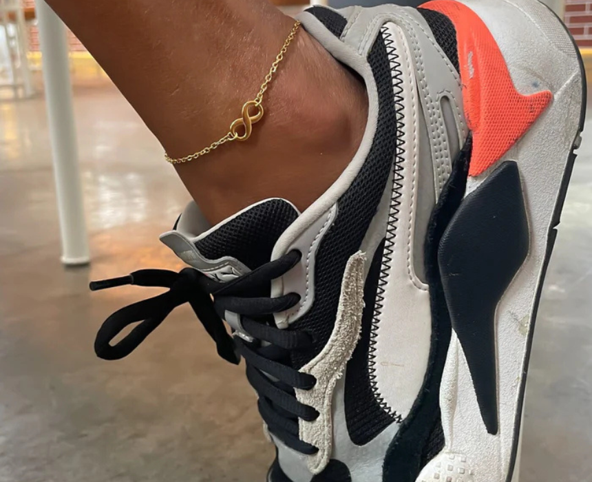 The Infinity Anklet features a timeless infinity symbol design that represents continuity and elegance in a simple and refined style. Crafted for comfortable everyday wear, it sits lightly around the ankle and pairs effortlessly with both casual and dressy outfits. Wear it as a standalone piece for a minimal look or combine it with other anklets to create a layered and stylish appearance.