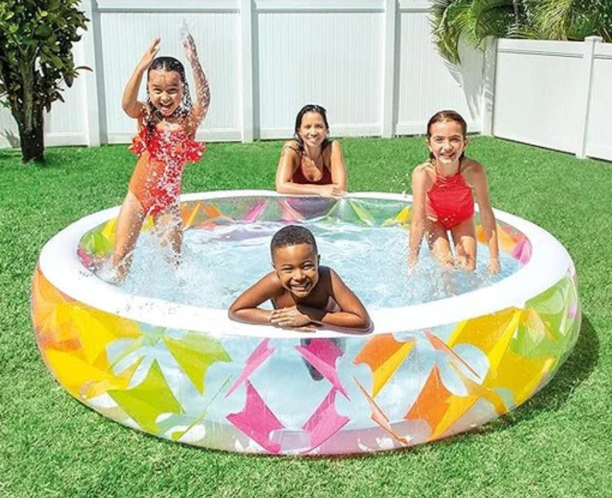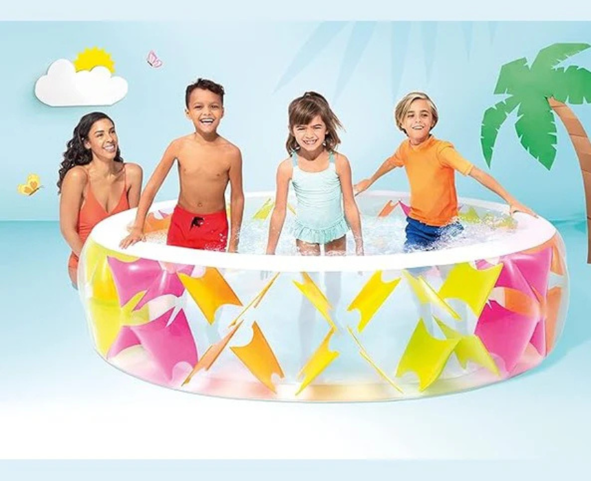 The inflatable pool is designed to provide refreshing summer fun for kids and families, offering a spacious and stable water play area for outdoor relaxation. It is easy to set up and ideal for backyard use, making hot days more enjoyable with safe and comfortable splashing activities. Perfect when paired with swimwear and summer accessories, it creates a fun and stylish outdoor water play space.