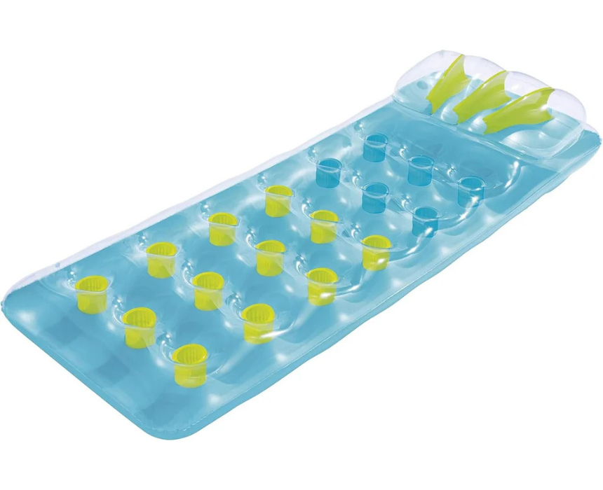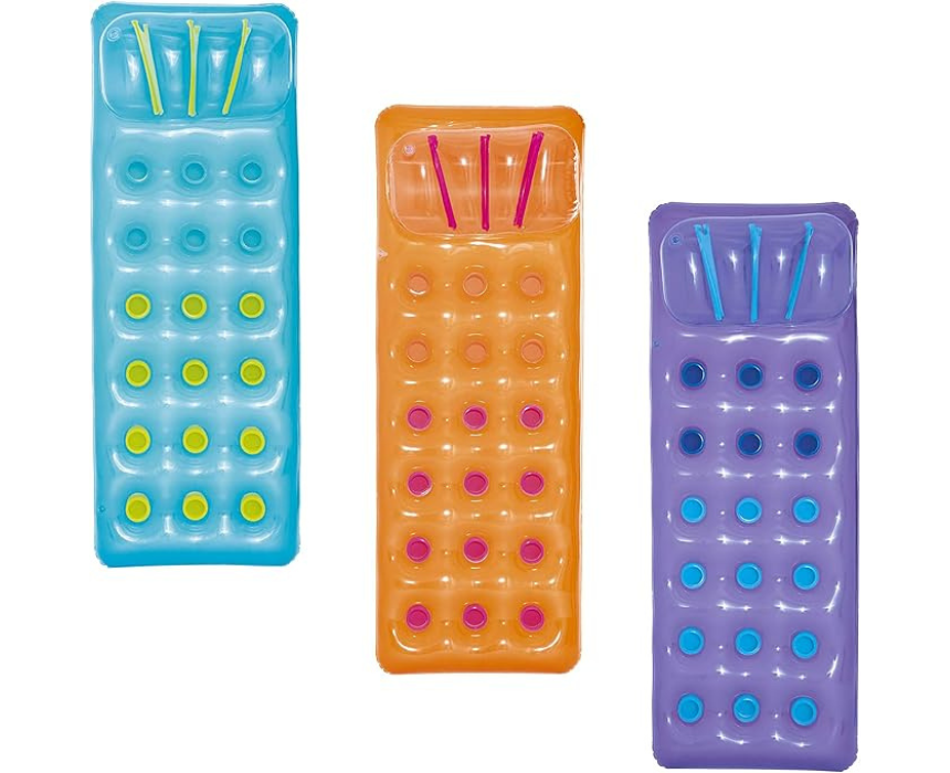 Enjoy relaxing days on the water with this inflatable pool lounge designed for comfort and stability. Featuring a supportive backrest and spacious surface, it allows users to float effortlessly while soaking up the sun, making it perfect for poolside or beach use. Pair it with swimwear and sunglasses for a laid back summer style.