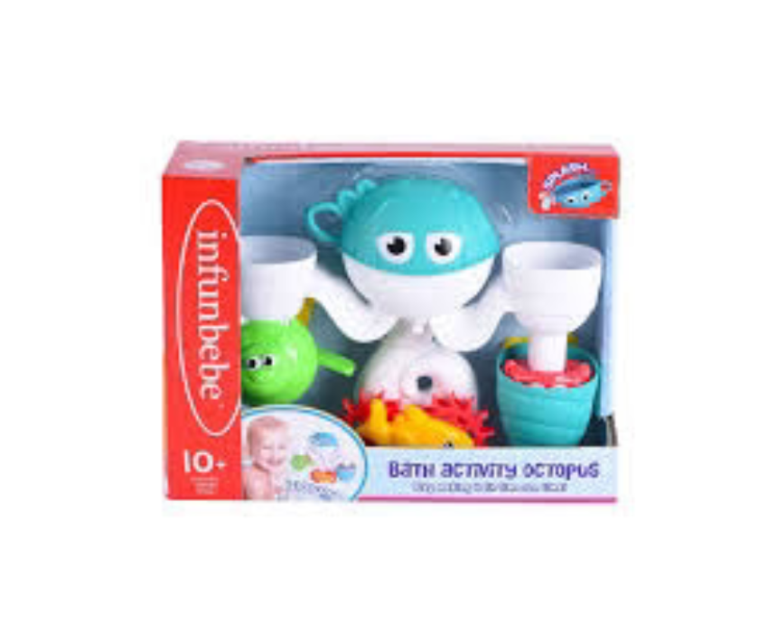 INFUNBEBE Bath Activity Octopus is a fun and engaging bath toy that entertains children while encouraging sensory exploration and hand eye coordination. Designed to make bath time playful and interactive, it features colorful elements and movable parts that stimulate curiosity. Perfect for daily bath routines, it combines learning and fun in a safe, water friendly design.