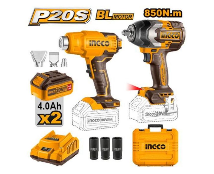 The Ingco Impact Wrench and Heat Gun Combo offers a powerful 850 Nm impact wrench paired with a versatile heat gun, perfect for a range of heavy-duty and precision tasks. This bundle includes two 4 Ah batteries, a charger, essential accessories, and a sturdy plastic carrying case for easy transport and storage. Ideal for professionals and DIY enthusiasts seeking efficiency and convenience in one compact kit.