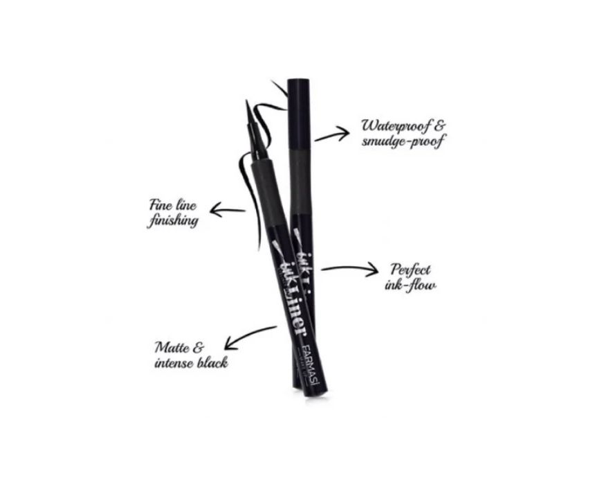 Farmasi Ink Liner in Black features an ultra-lightweight, long-lasting formula with a precision brush applicator for flawless, bold lines in just one stroke. Its extended felt tip ensures effortless application, creating sharp, even wings or sleek everyday looks. Smudge-proof and rich in color, this eyeliner stays put all day for expressive, defined eyes.
