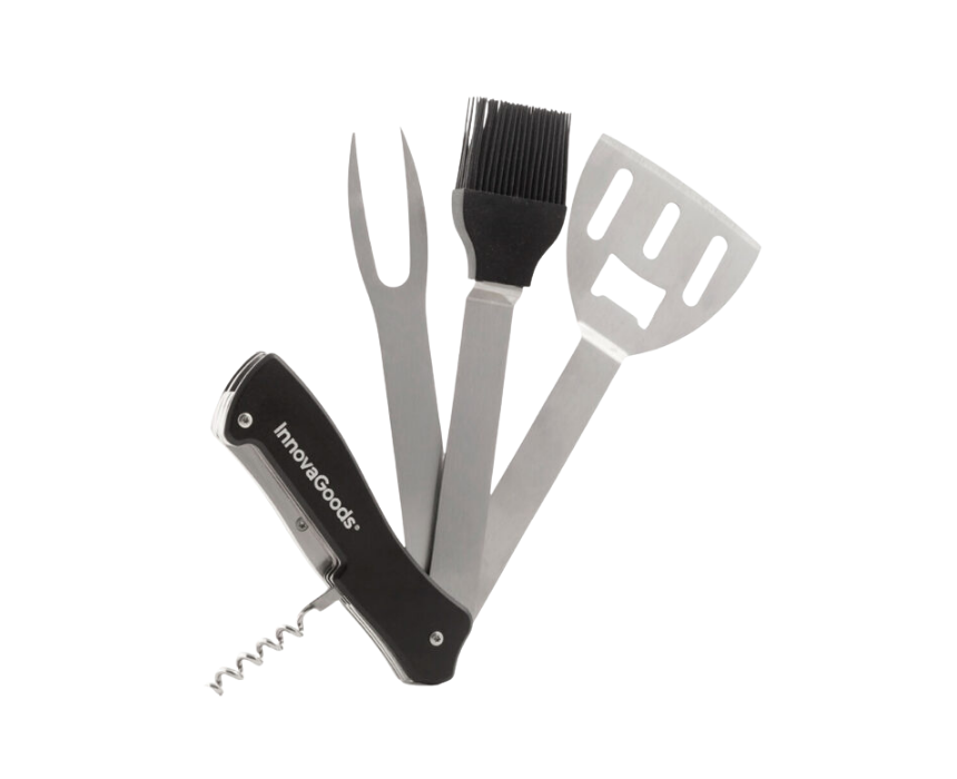 <p>This 5 in 1 barbecue utensil set is ideal for camping and outdoor trips. It includes a spatula, brush, fork, corkscrew and bottle opener, all foldable and detachable for compact storage and easy transport. Made from steel, ABS and silicone it is convenient, lightweight and practical for preparing barbecues anywhere.</p>