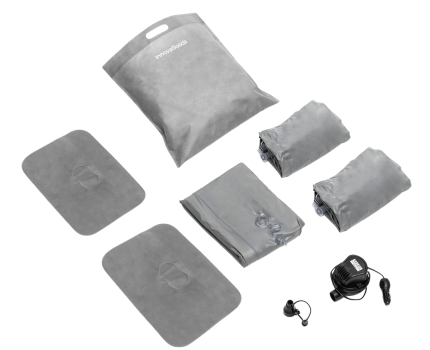 <p>This multifunction inflatable car mattress is perfect for resting on long journeys or outdoor use at home, camping, beach or festivals. Made from durable PVC in grey, it includes two inflatable pillows, two support brackets, a repair kit and an electric pump with car adaptor and interchangeable nozzles. Lightweight, portable and easy to store in the carry bag at approximately 30 × 12 × 29 cm and 1.92 kg, it is suitable for all car types and for both children and adults.</p>