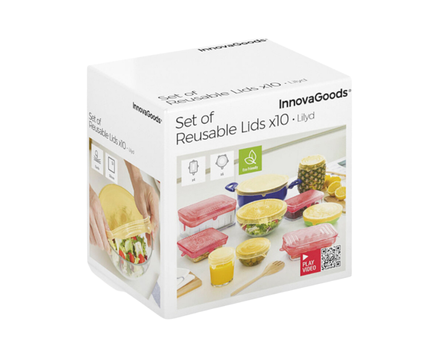 <p>The Lilyd InnovaGoods set of 10 reusable and adjustable silicone kitchen lids makes storing and preserving food easy and eco friendly. Flexible and elastic they fit a wide range of containers including jars bowls plates and dishes providing an airtight leak proof and drip proof seal. Microwave fridge freezer and dishwasher safe these durable lids help reduce food waste while keeping contents visible and fresh for longer.</p>