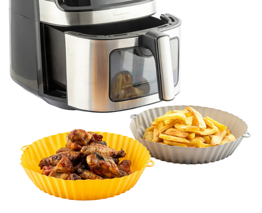 <p>Make cooking healthier and easier with the Mollicon InnovaGoods 2 unit silicone baskets for air fryers. Made from food grade BPA free silicone these non stick baskets are flexible reusable and heat resistant ideal for oil free recipes in air fryers ovens or microwaves. Each set includes a handy pastry brush and the baskets are dishwasher safe freezer safe and designed for easy handling and optimal air flow for crispier nutritious results.</p>