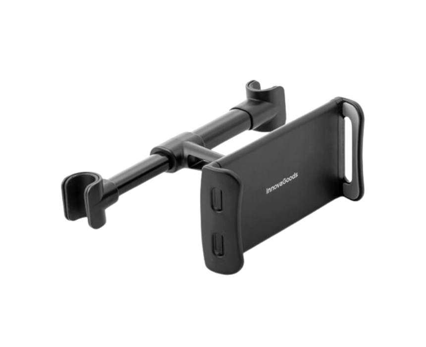 <p>This car tablet and mobile holder allows children and adults to use devices comfortably on long or short journeys. Made from ABS and silicone in black, it features adjustable device support from 12 to 20 cm, headrest attachment from 12.5 to 15.5 cm, 360 degree rotation and cable access holes. Lightweight and portable at approximately 7.5 × 7.5 × 20 cm and 0.168 kg, it is universal, easy to install and ideal for tablets and mobile phones in all types of cars.</p>