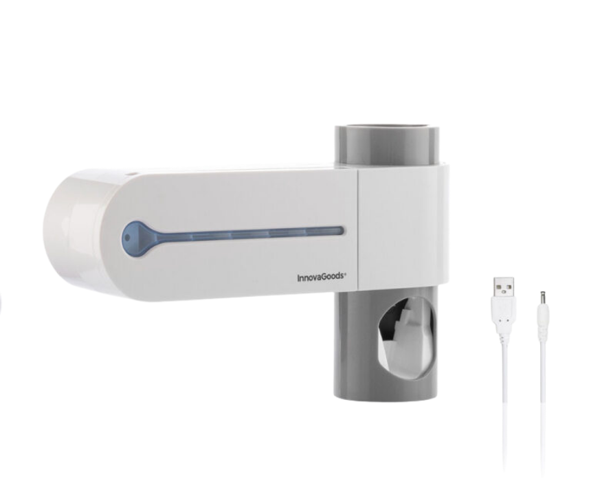 <p>This multifunction 3 in 1 UV toothbrush steriliser combines a toothpaste dispenser and toothbrush holder for wall mounting using adhesive. It holds up to 5 toothbrushes and disinfects them in 4 to 5 minutes using UV C light eliminating 99.9 percent of bacteria. Easy to install clean and use it ensures safe and hygienic oral care for the whole family.</p>