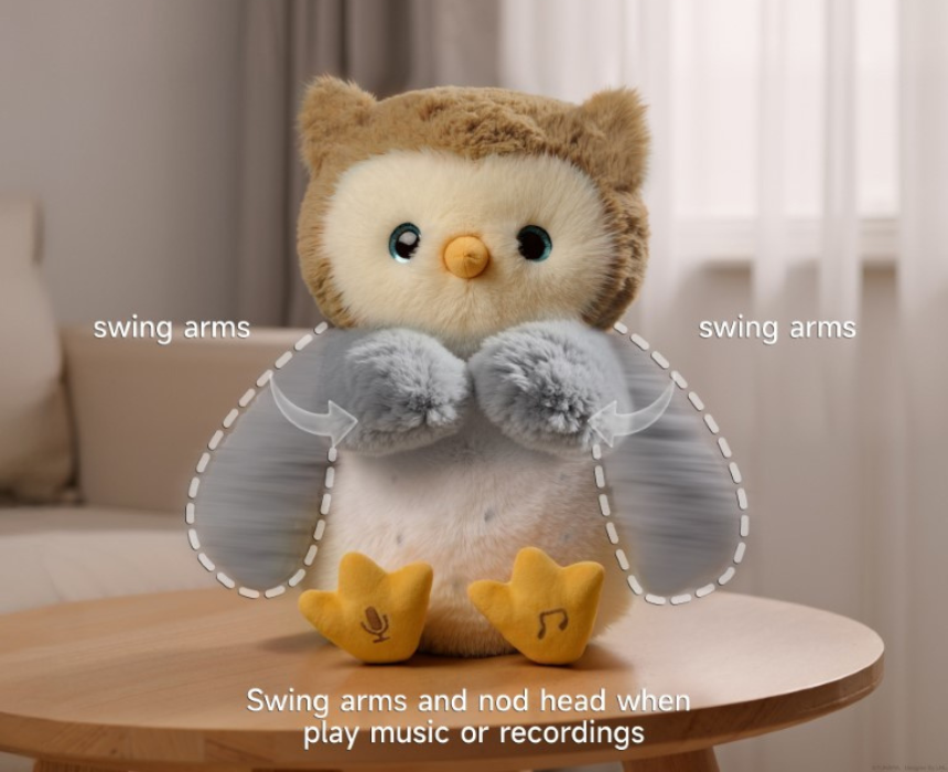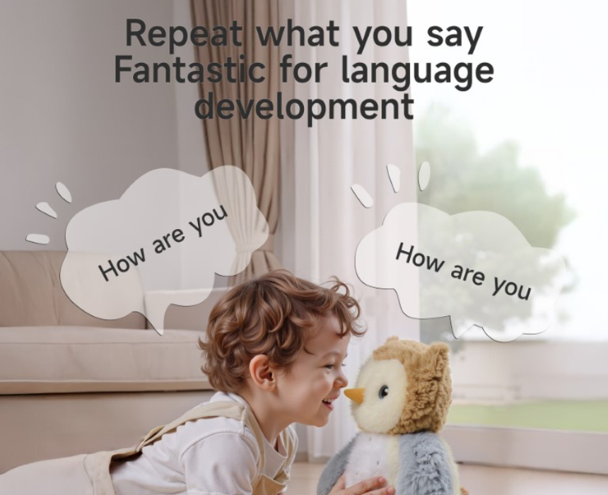 This interactive plush toy is designed to support early learning and emotional development with a built in voice recording feature and responsive actions like head nodding and wing flapping. Made from soft hypoallergenic fabric with embroidered details for added safety, it plays classic children’s songs for engaging playtime. Lightweight and easy to carry, it makes a comforting companion for toddlers at home or on the go.