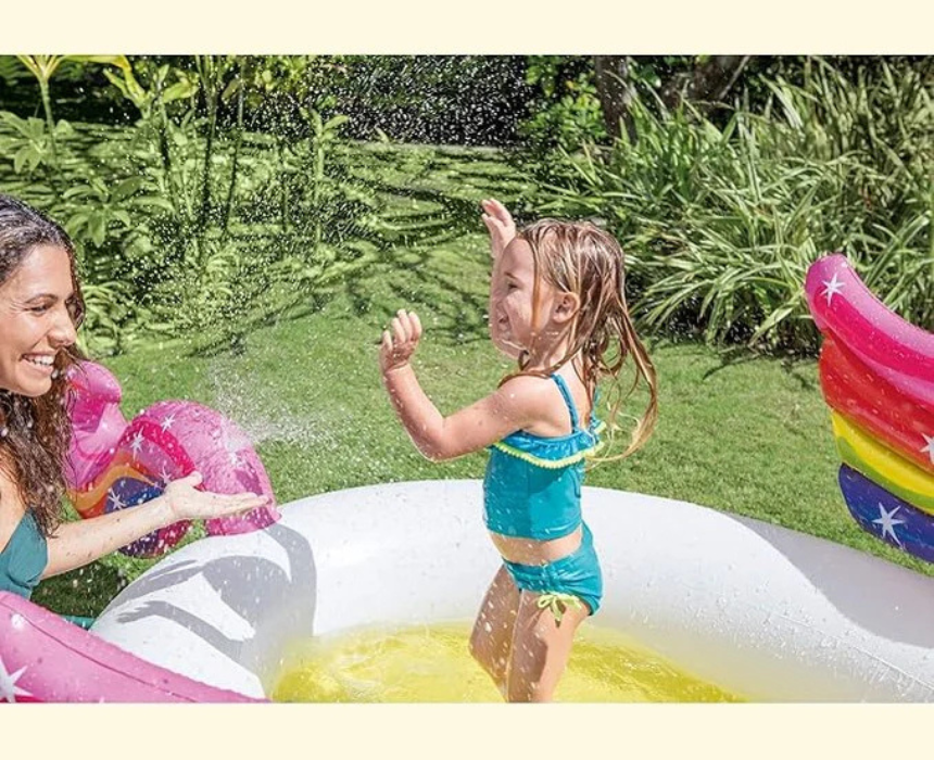 Intex Unicorn Pool is a fun and colorful inflatable pool designed to keep kids cool and entertained during warm days. Featuring a playful unicorn design and durable material, it provides a safe and comfortable space for splashing and relaxing. Easy to set up and use, it is perfect for backyard play and summer enjoyment.
