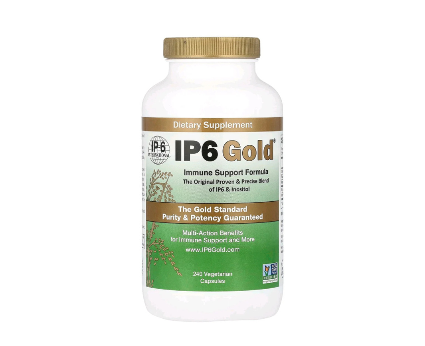 IP6 Gold by IP6 International is a 240 capsule dietary supplement featuring the original blend of IP6 and Inositol to support immune health, cardiovascular function, glucose metabolism, and overall wellness. Vegan, gluten free, non GMO, and third party tested, this multi action formula also provides plant based minerals for healthy bones and teeth. Take two capsules twice daily on an empty stomach or as directed by a health professional for optimal results.