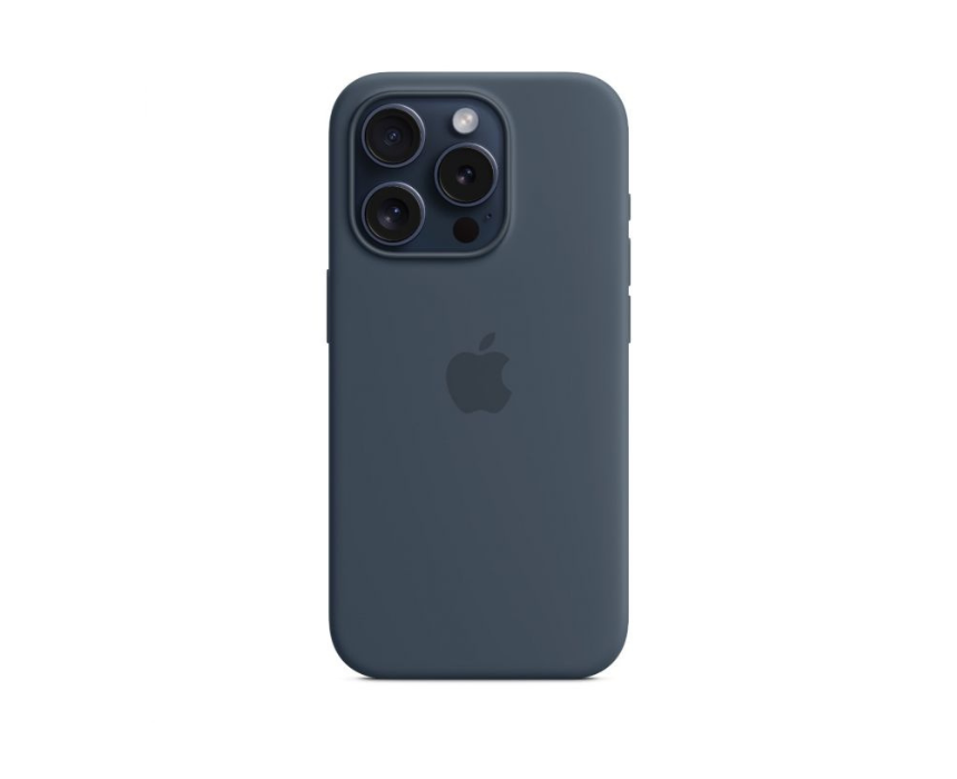 The iPhone 15 Pro Max Silicone Case with MagSafe in Storm Blue delivers a soft-touch finish, precise fit, and strong built-in MagSafe magnets for secure and efficient wireless charging. Its durable silicone exterior and protective microfiber lining help shield the phone from scratches and everyday impact. The Storm Blue color adds a cool, modern touch that pairs well with any style.