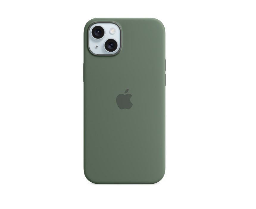 This silicone MagSafe case is designed to protect the iPhone 15 while providing a soft touch and comfortable grip. It supports MagSafe charging and accessories with a secure and precise fit for everyday use. Slim and lightweight, it offers reliable protection with a refined cypress finish.