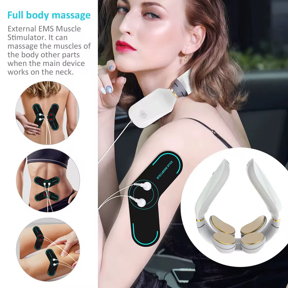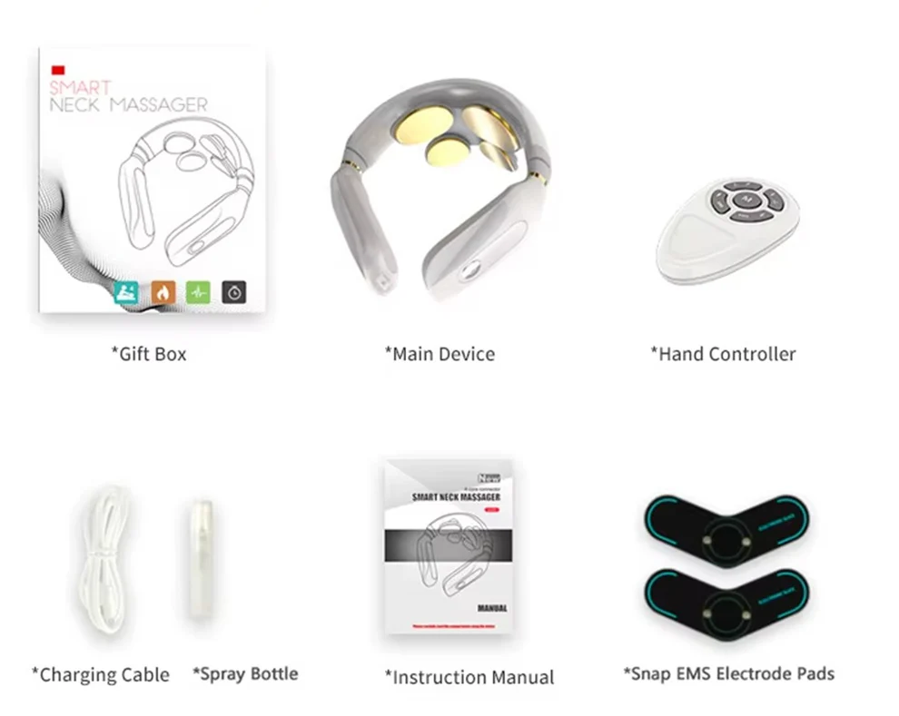 This ergonomic neck massager features professional-style kneading, pulse technology, and EMS stimulation to relieve muscle fatigue. It offers three massage modes with 14 intensity levels and adjustable heating at 39°C, 41°C, or 43°C for targeted comfort. Powered by a 2000mAh lithium battery with a built-in musical function, it provides a relaxing, cordless therapy experience anywhere. Simply select your preferred heat and intensity for personalized relief. Please check specs prior to ordering to ensure a proper fit for your needs as this product includes the massager unit only.