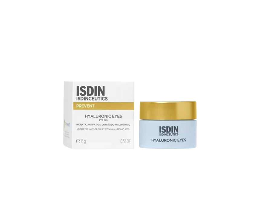 ISDIN Hyaluronic Eyes Gel hydrates and smooths the delicate eye area with hyaluronic acid, helping to reduce puffiness, fine lines, and signs of fatigue. Its lightweight, fast-absorbing formula refreshes and revitalizes tired-looking eyes. Ideal for daily use to maintain a youthful, bright eye contour.