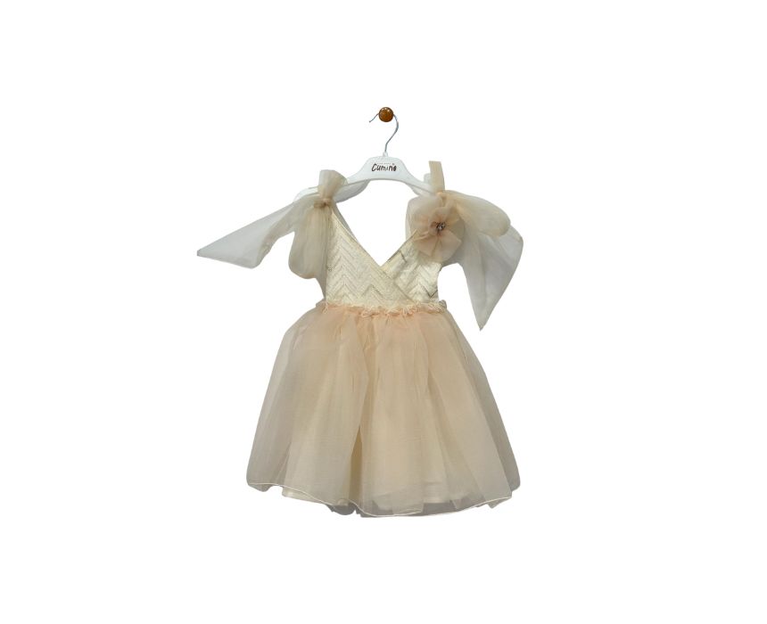 The Ivory Petal Glow Dress is a charming event-ready outfit designed for girls aged 2 to 5 years. Made from soft chiffon and breathable cotton, this beige dress offers comfort and elegance for special occasions. Pair it with delicate sandals and a matching hair accessory for a graceful, picture-perfect look.