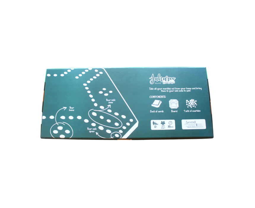 Jackaroo is a fun, group board game designed for 2-4 players, making it ideal for kids, teens, adults, and family gatherings. The game includes a wooden board, 16 glass marbles, a deck of playing cards, and game rules. Played by two teams of two, it combines cards and marbles for an engaging experience. Perfect for game nights, family parties, or entertaining guests, Jackaroo will become a go-to game, bringing everyone together for hours of fun. The board is made of durable plywood, ensuring lasting quality Designed for aged 7+.