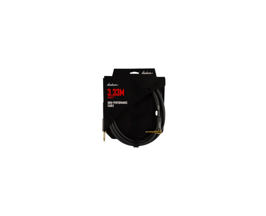 The Jackson® instrument cable delivers professional-grade performance with durable 24K gold-plated connectors, heavy-duty shielding, and 8mm outer diameter 20 AWG wire. Featuring one straight and one right-angle plug, this cable is ideal for hard-to-reach jacks on guitars or pedals while maintaining a clean, noise-free signal. Custom Jackson® logo jacks and rugged construction make it a reliable choice for serious players seeking clarity and durability.