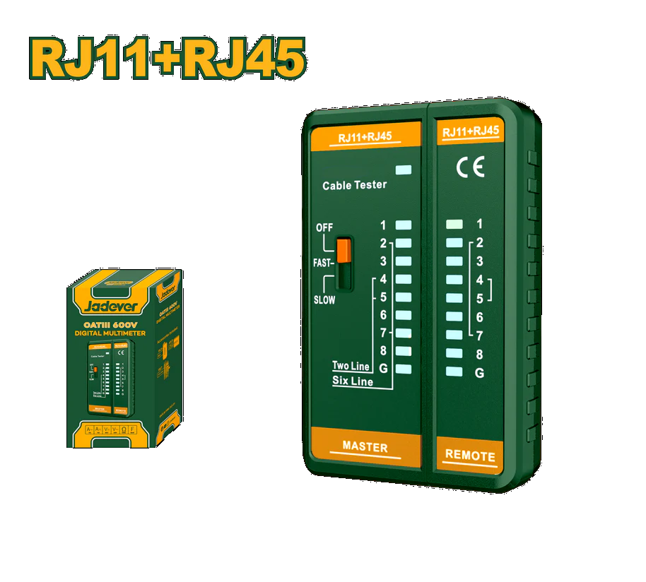 Jadever Ethernet cables and phone cables tester RJ 45 and RJ 11 inputs. Battery included