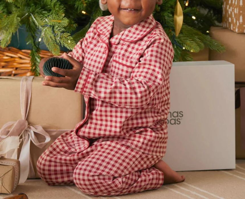 Make festive mornings extra special with this jersey check pyjama set, featuring a classic shirt-style top with button front, rounded collar, contrasting neck tape, and piping detail. The matching check trousers have an elasticated waistband and piped cuffs for comfort and easy dressing. Perfect for Christmas Eve, family traditions, or cozy holiday mornings, these pyjamas combine style, comfort, and festive cheer for little ones.