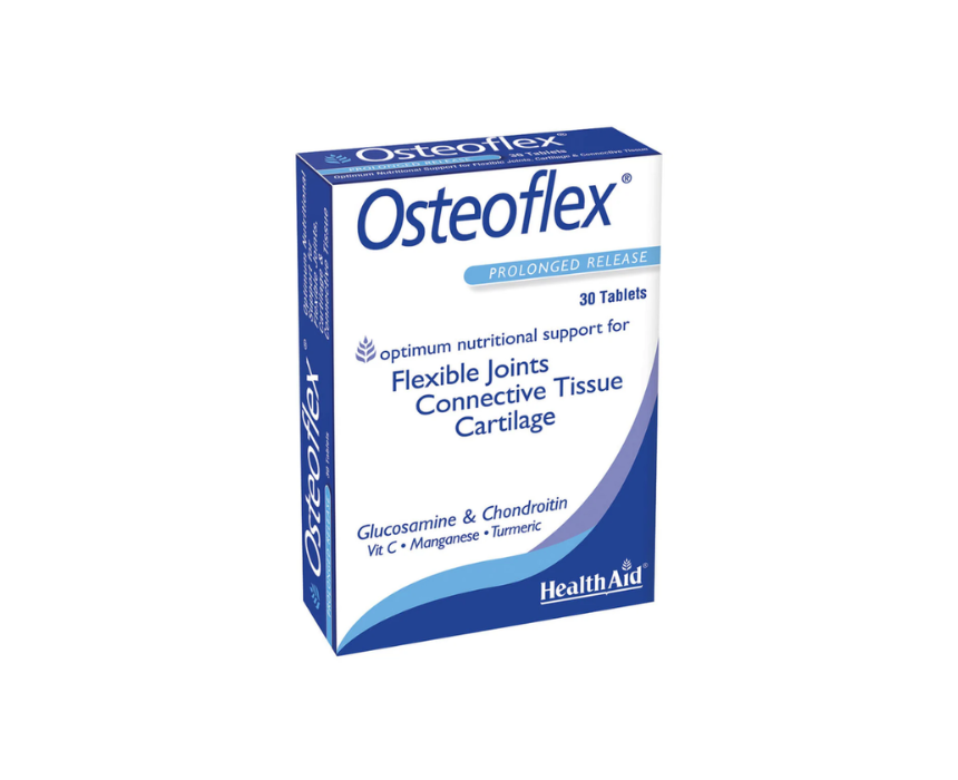Osteoflex® is a joint-support supplement formulated to promote healthy joints, cartilage, and bone strength. Combining glucosamine and chondroitin sulphate with vitamin C, turmeric, and manganese, it supports collagen formation, connective tissue maintenance, and bone health. Turmeric adds natural anti-inflammatory benefits, while manganese contributes to normal bone and tissue function. Taken daily with meals, it helps maintain mobility, reduce discomfort, and strengthen joint resilience.