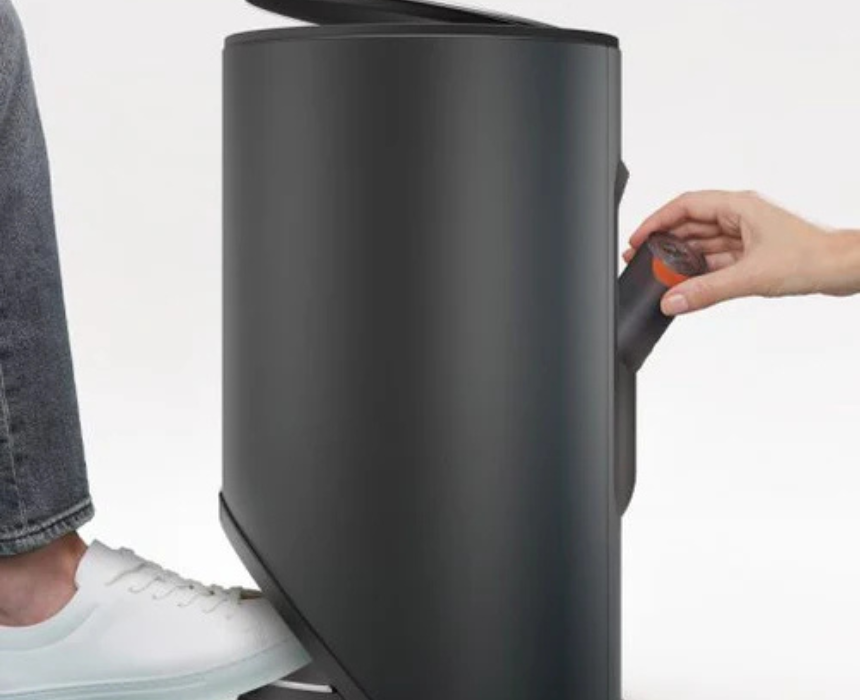 The Joseph Joseph Arc 10L Easy-Push Matt Black Pedal Bin features a compact design with a hands-free pedal for hygienic and effortless waste disposal. Its sleek matte black finish fits perfectly in small kitchens, bathrooms, or offices, and can be styled against walls or under counters for a tidy, modern look.