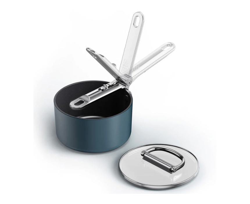 The Joseph Joseph Space 15cm Non Stick Saucepan with folding handle is designed for compact storage and everyday cooking convenience. Its durable non stick interior ensures smooth food release and easy cleaning, while the innovative folding handle allows efficient stacking in cabinets. The sleek, modern finish complements contemporary kitchens and can be styled with coordinating cookware for a streamlined, organized look.