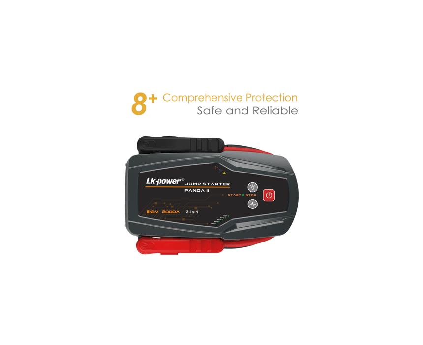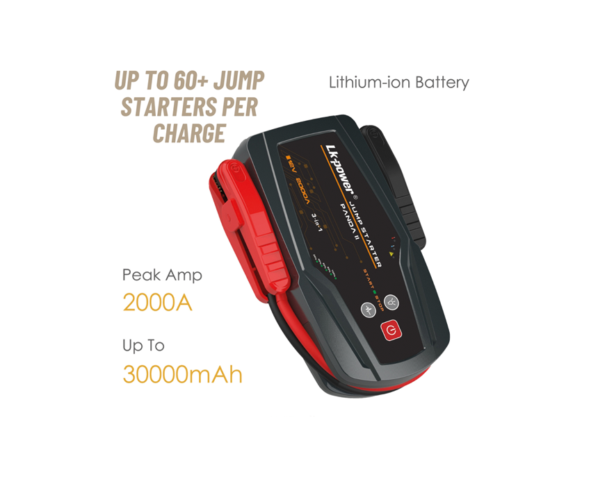 The Emergency Power Box Jump Starter 30000mAh is a versatile 3-in-1 device designed for vehicles and mobile devices. With a powerful 30,000mAh lithium battery, it can jump-start trucks, cars, yachts, and more up to 60+ times per charge. It also serves as a power bank (5V/2.4A output) and features a 160LM LED lamp. The package includes jump-start clamps, a 3-in-1 USB connector, DC car adapter, and a portable cover box for easy storage and on-the-go use. Perfect for emergencies and outdoor adventures.