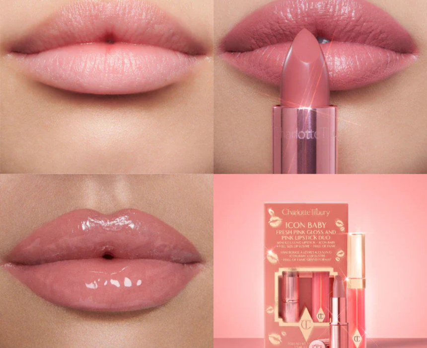 K I S S I N G Lipstick and Lip Gloss Duos by <entity type=”company” name=”Charlotte Tilbury” disambiguation=”british beauty brand”>Charlotte Tilbury</entity> pair a richly pigmented, satin-finish lipstick with a high-shine gloss for a fuller-looking, luminous pout. The lipstick delivers smooth, hydrating color, while the gloss enhances dimension and adds a light-reflecting finish. Wear the lipstick alone for polished definition or layer with gloss at the center of the lips for a plumped, evening-ready look.