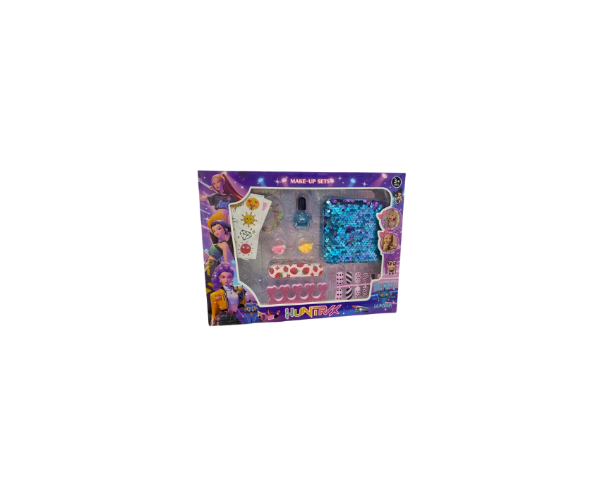The K-Pop Demon Hunters pretend play makeup and nail set for kids includes pretend nail polish, toe separators, glitter, and nail decals, promoting imaginative play and fine motor skill development for ages 3 and up. Perfect for creative playtime, it’s best styled by using the set to decorate nails or pair with fun dress-up outfits for a colorful K-pop-inspired look.