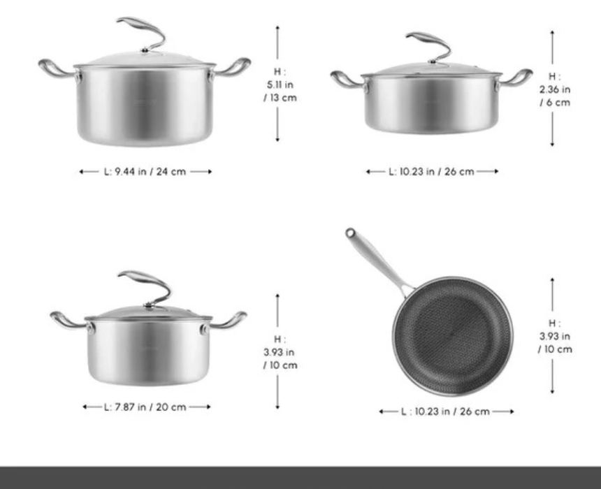 The Karaca 5-Ply PowerSteel 7-Piece Cookware Set is crafted from surgical grade 316+ stainless steel with a 5-layer construction for superior heat distribution, durability, and resistance to warping. Induction-ready and compatible with all stovetops, this set ensures precise cooking and easy maintenance. Its sleek, modern design enhances any kitchen, making it perfect for display or everyday use.