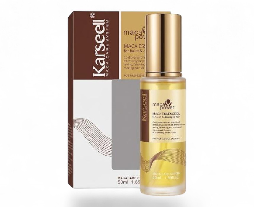 Achieve radiant shine and thermal protection with Karseell Maca Essence Oil. This lightweight 50ml serum is formulated with premium Moroccan Argan oil to provide intense hydration while controlling frizz. It acts as a protective shield against heat damage while repairing split ends and damaged strands across all hair types. Fast-absorbing and non-greasy, it leaves a silky finish without weighing hair down. A concentrated treatment for smooth, healthy-looking hair.