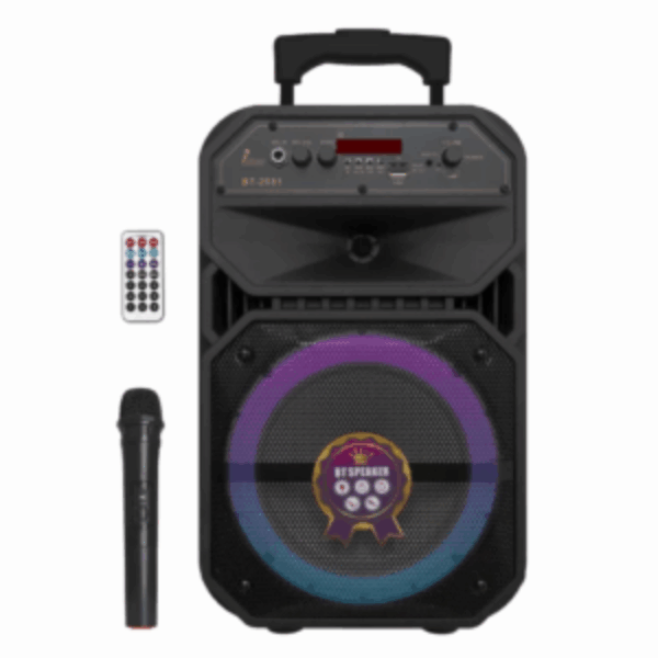 KBQ wireless Bluetooth speaker with wired microphone is a portable karaoke system designed for home theatre outdoor parties and everyday entertainment. It connects easily to mobile phones computers and audio players delivering clear sound for singing music and fun karaoke sessions. Lightweight and easy to carry it is suitable for both kids and adults making it ideal for family gatherings and celebrations.