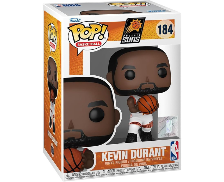 Funko Kevin Durant collectible vinyl figure #184 showcases the basketball star in a stylized design that highlights his iconic look. With detailed features and a compact size, it is ideal for displaying on desks, shelves, or within sports themed collections. Perfect for fans, it can be styled alongside other collectibles to create a cohesive and personalized display.
