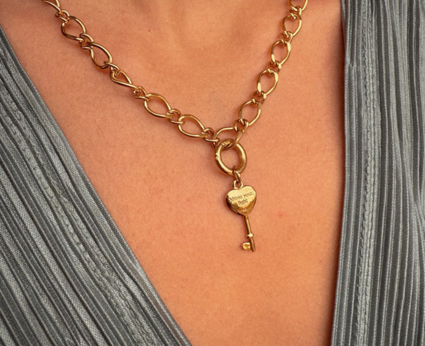 The Key of Destiny Charm is a symbolic jewelry piece designed to add meaning and elegance to any bracelet or necklace. Its versatile design allows the wearer to style it alone for a minimal look or pair it with other charms for a personalized combination. Ideal for everyday wear or gifting, it brings a subtle yet meaningful touch to any outfit.