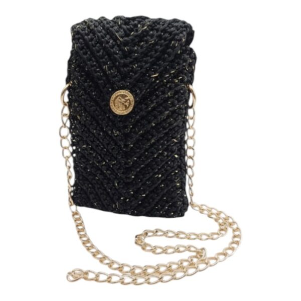 Complete your outfit with the sophisticated khaki hand-woven handbag. Meticulously crafted from premium yarns, this medium-to-large sized bag (26×17 cm) offers a sturdy yet elegant structure. It features a refined texture that highlights its artisanal quality, making it a versatile choice for both professional and casual settings. The addition of a sleek golden chain allows for effortless shoulder carrying, while the neutral khaki tone ensures it matches your entire wardrobe.