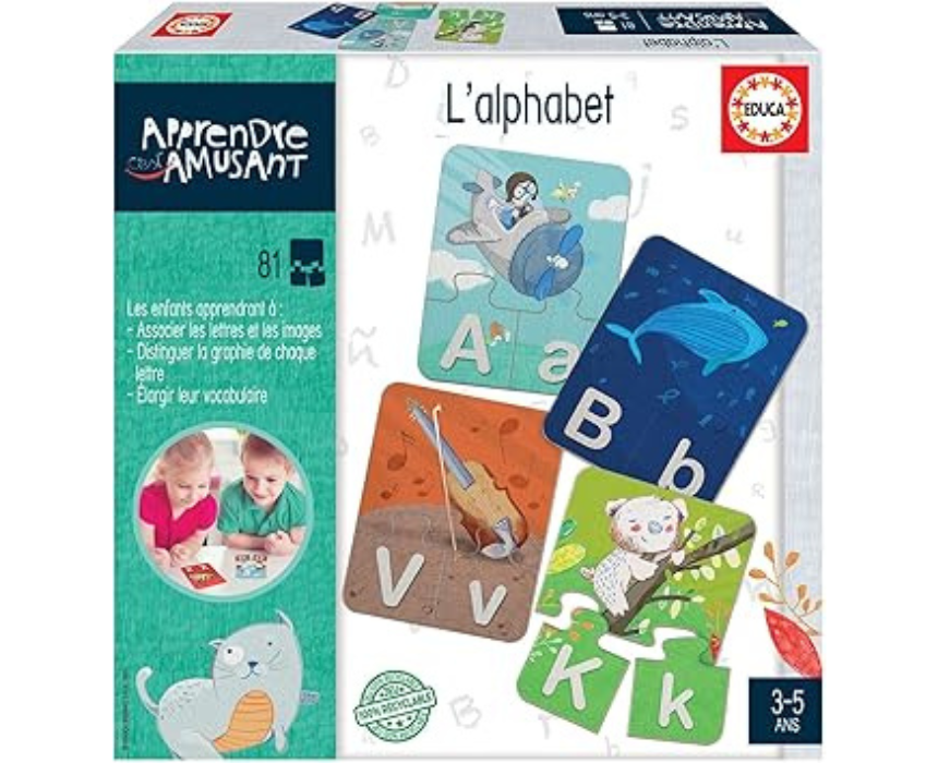 Educa Apprendre C’est Amusant L’alphabet is an educational learning game designed to help children recognize letters and build early language skills through interactive play. Featuring engaging visuals and easy to handle pieces, it supports cognitive development while making learning fun at home or in the classroom. Suitable for young children, it can be used during playtime or study sessions to create an enjoyable learning routine.