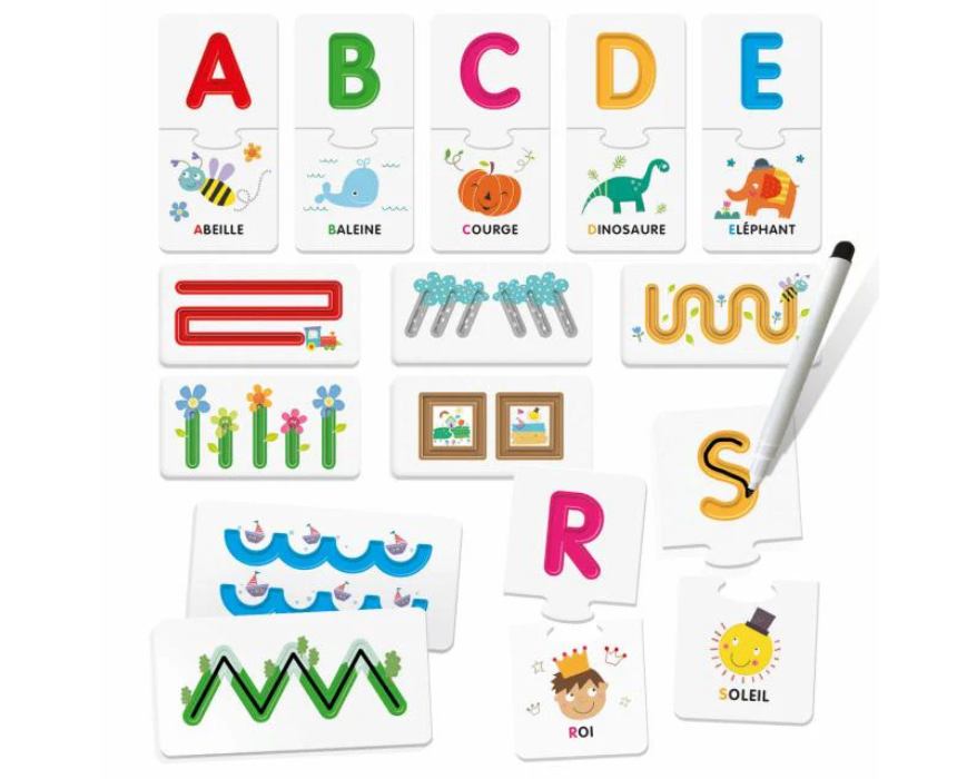 The alphabet learning kit is designed to help children discover letters and early writing skills through playful and interactive educational activities. It supports language development, fine motor skills, and memory while making learning engaging and enjoyable. Ideal for home or classroom use, it can be used during study time at a desk or learning corner for structured alphabet practice and creative play.