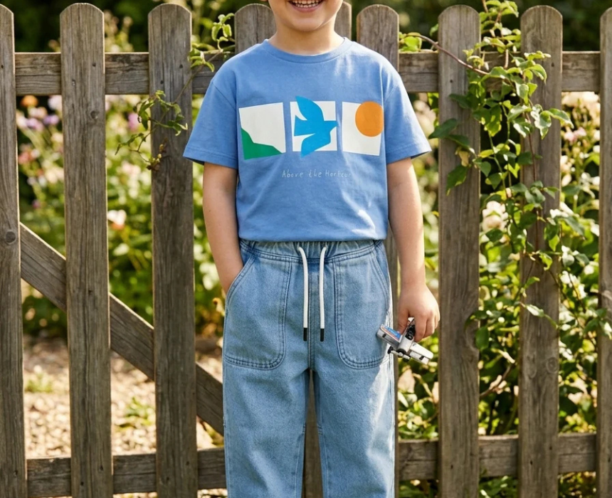 This kids blue T shirt offers a soft and comfortable feel, making it ideal for everyday wear. Designed for ages two to seven, it features a simple versatile style that pairs easily with jeans, shorts, or joggers. Perfect for casual outings, school days, or layering under jackets in cooler weather.