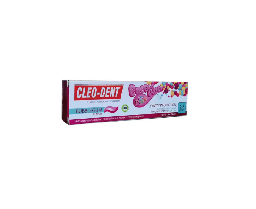Cleo Dent Bubble Gum Toothpaste is specially formulated for children aged 2–6, combining fun flavor with effective oral care. Boosted with natural fluoride and calcium, it helps strengthen developing teeth, prevent cavities, and support healthy gums. Its sugar‑free, gentle formula ensures safe daily brushing while making the routine enjoyable for kids. With a bright bubble gum taste, it encourages consistent oral hygiene habits from an early age.