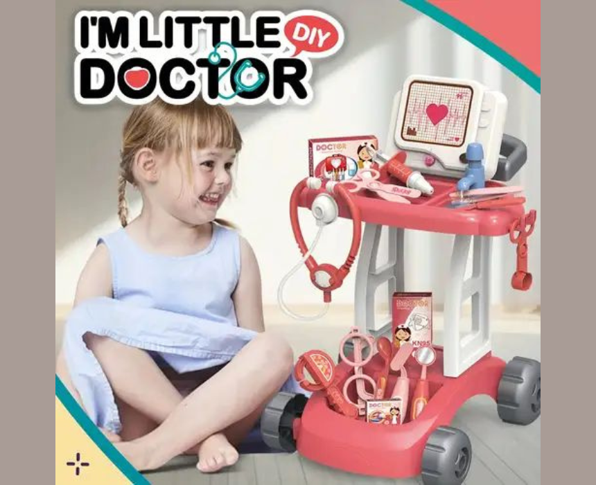 This doctor playset is designed for aspiring young doctors and includes a stethoscope, thermometer, syringe, glasses, and other accessories. It encourages imaginative role play, teaching basic medical concepts while providing hours of fun. Suitable for children aged 3 and up.