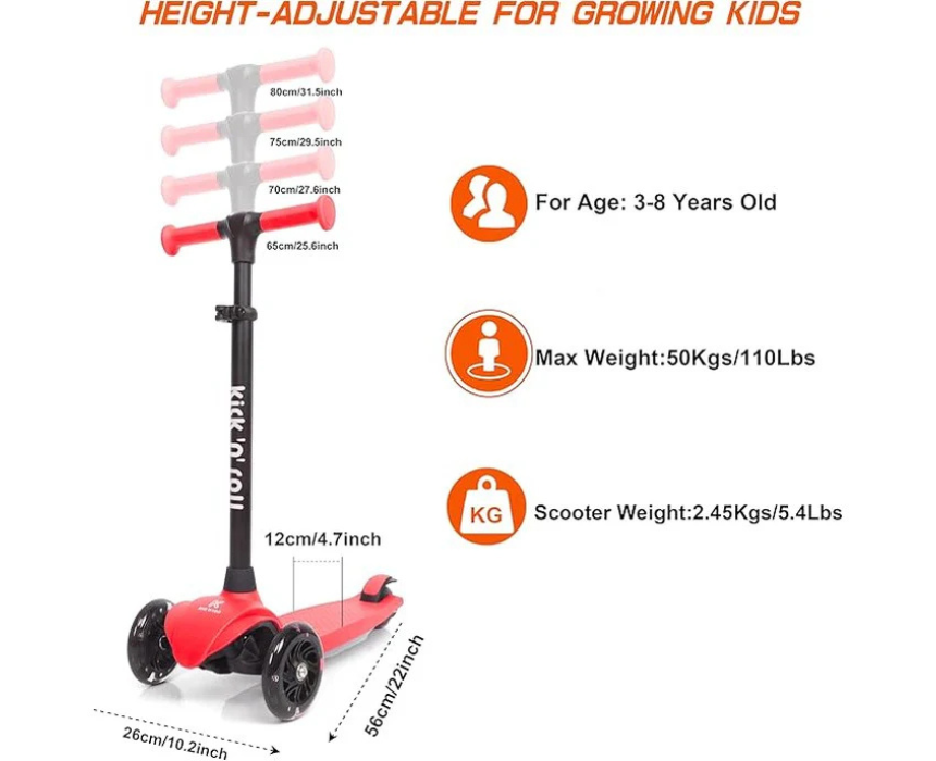 The Kick N Roll K6 Kid Scooter is a fun and active ride designed to support balance, coordination, and outdoor play. Built with an easy to use structure, it offers smooth movement for young riders while encouraging confidence and physical development. Perfect for everyday adventures, it pairs well with casual sporty outfits for a comfortable and energetic riding experience.