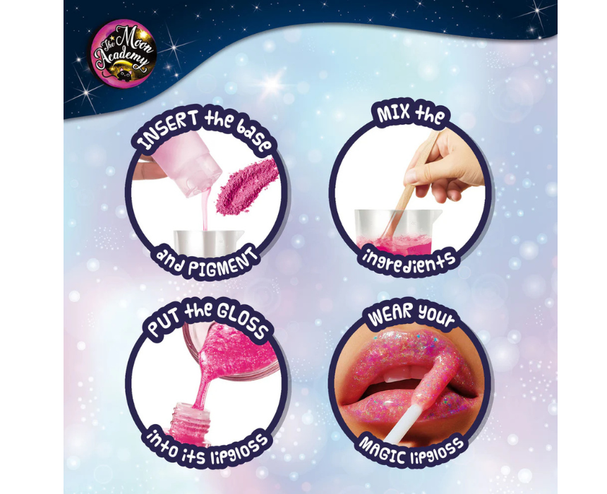 The lip gloss is designed for kids to enjoy playful beauty moments with a glossy shine and smooth texture that adds a fun finishing touch to everyday dress up looks. Perfect for imaginative play or party styling, it can be worn alone or layered over other lip colors to create a light sparkling effect suitable for themed outfits or casual fun.
