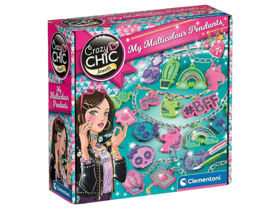 The Clementoni Crazy Chic My Colourful Pendants Kit lets children create unique necklaces, bracelets, and rings with sparkling charms, colourful cords, and metal chains. This DIY jewellery set sparks creativity, encourages personal style, and helps develop fine motor skills and hand-eye coordination through threading, clasping, and customising. Designed and made in Italy with safe, high-quality materials, it’s an ideal gift for birthdays, holidays, or any special occasion.