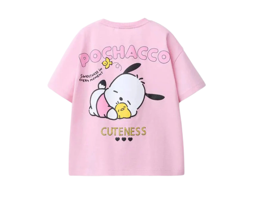 This kids pink Pochacco t shirt is designed for ages two to seven, offering a soft and breathable feel for all day comfort. The playful character design adds a fun touch, making it perfect for casual wear or outings. It pairs easily with jeans, shorts, or skirts for a cute and relaxed everyday style