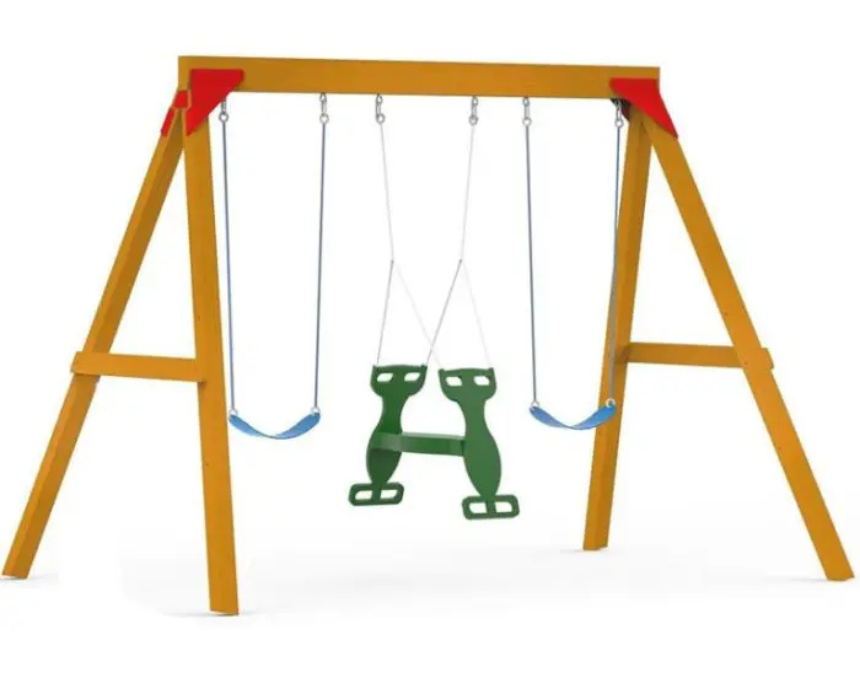 Dolphin Playground Adventure Simple Wood Swing With 3 Seats With Glider is a durable outdoor playset designed for active and social play. Crafted from sturdy wood, it features multiple seating options and a smooth glider to keep children engaged while promoting balance and coordination. Ideal for backyards, it can be styled as a fun shared play space where kids enjoy group adventures and outdoor activity.