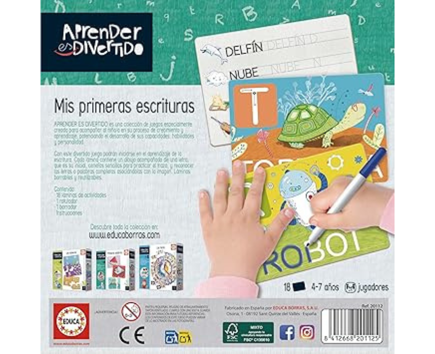 Educa Mes premières Écritures is a fun educational learning set designed to help young children develop early writing and fine motor skills through guided tracing and engaging activities. With easy to follow exercises and colorful visuals, it supports letter formation and hand coordination while encouraging independent practice. Ideal for home or classroom use, it can be incorporated into daily learning routines for effective skill building.
