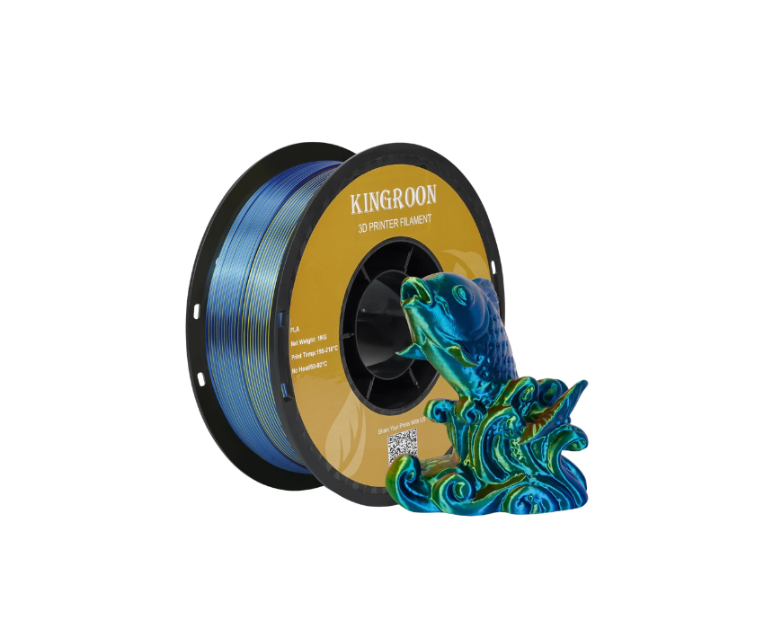 Kingroon PLA Silk filament in blue-green delivers smooth, glossy 3D prints with vibrant color and excellent layer adhesion. Ideal for decorative models, prototypes, and artistic projects, it combines aesthetic appeal with reliable extrusion. Compatible with most FDM printers, it ensures consistent, high-quality results for both hobbyists and professionals.