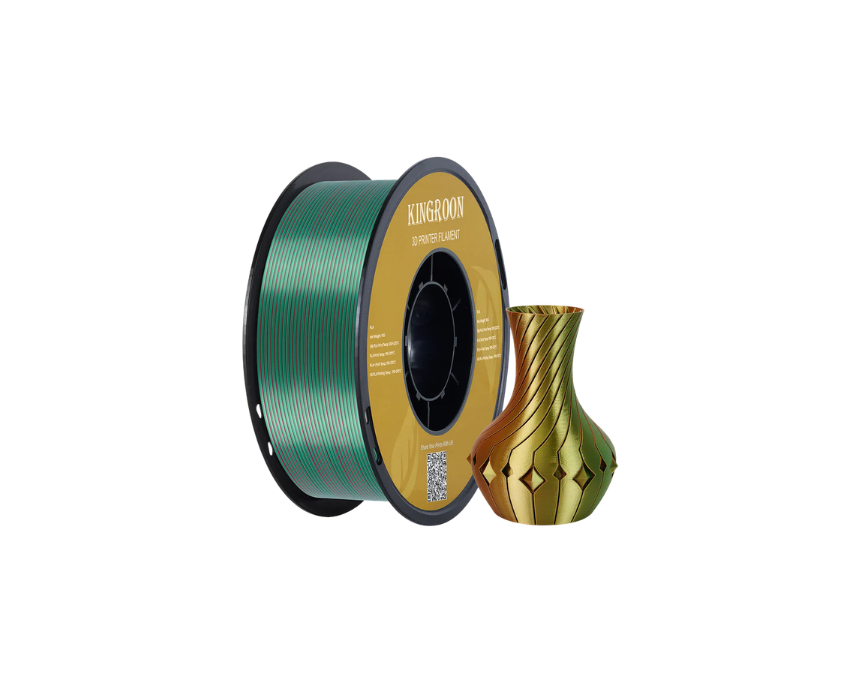 Kingroon PLA Silk filament in red, gold, and green delivers smooth, glossy 3D prints with vibrant colors and strong layer adhesion. Perfect for decorative models, prototypes, and artistic projects, it combines aesthetic appeal with reliable extrusion. Compatible with most FDM printers, it ensures consistent, high-quality results for both hobbyists and professionals.